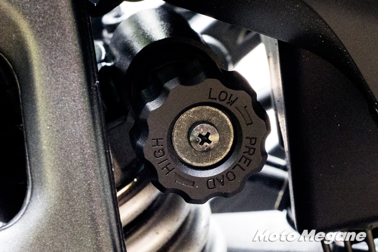 街中でのストップ&ゴーで足つきが気になる場合には、リアサスペンションに採用されているリモートプロロードアジャスターを試してみるといいだろう。