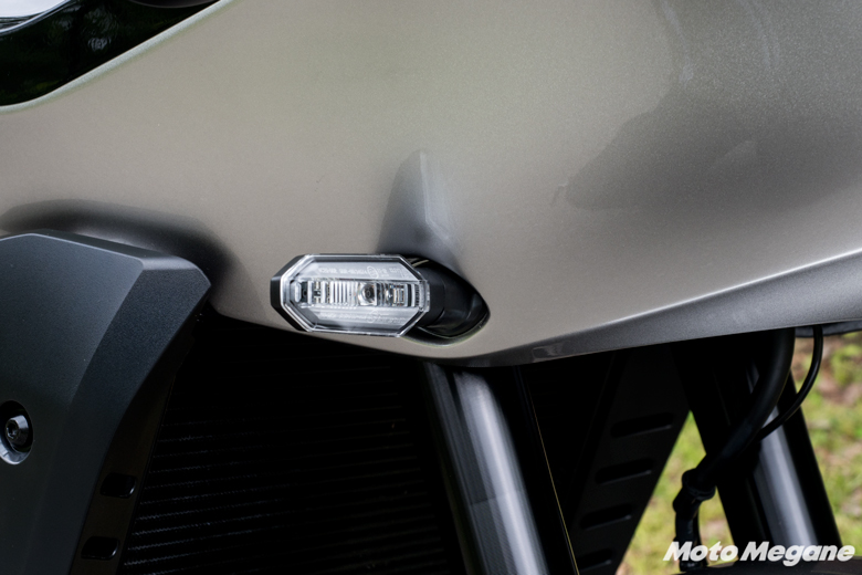 ウインカーにはLEDを採用しているが、注目してほしいのはそこじゃない。なんとウインカーはロケットカウルに直接マウントされているのだ。