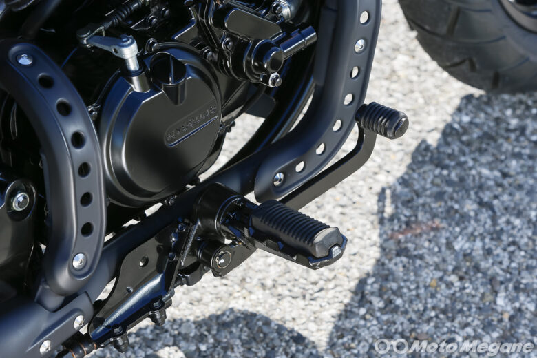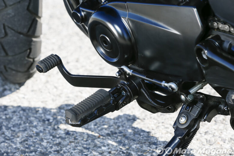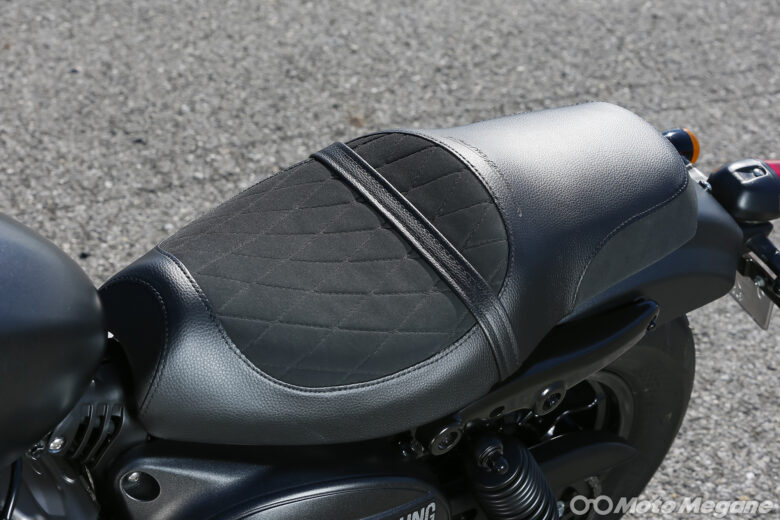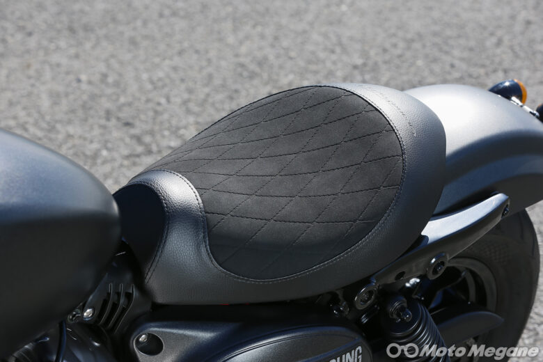 また、オプションでボバースタイルを極めるソロ(シングル)シートに交換が可能。ハンドルバーについては、剛性が高くかつ適度なしなりが振動低減にも効果のあるアルミテーパーバー(φ28.6mm)を使用している。