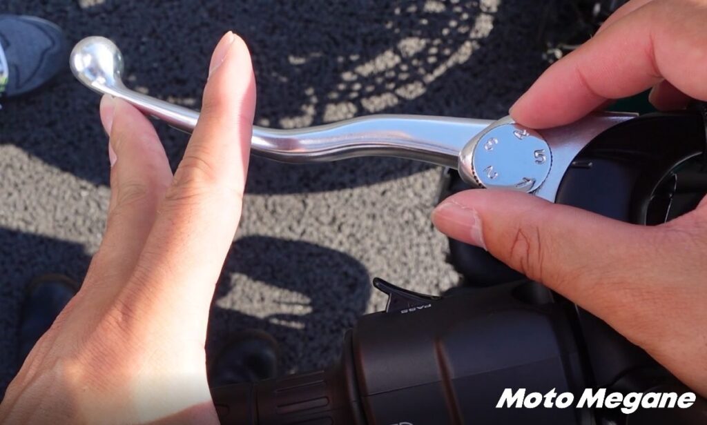 ライディング中頻繁に操作する部分なだけに、レバーの握りやすさは疲労感や安全面にも影響するので、標準で調節機構がついているのはありがたい。