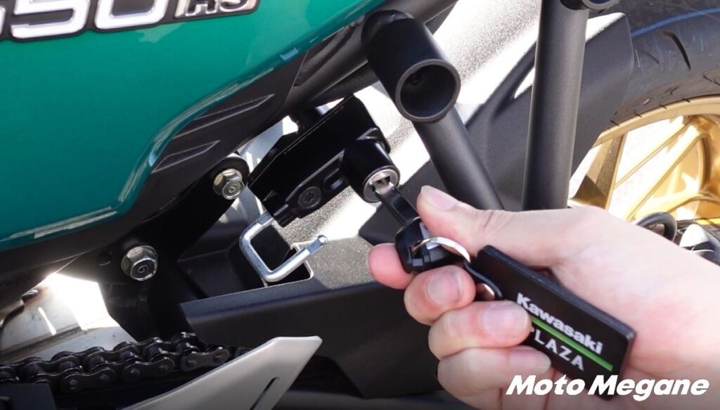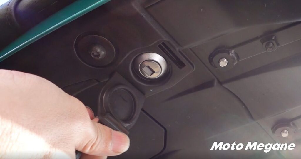 また、安全意識の高まりもあり、高価なヘルメットを使用するライダーも多い中、鍵付きのヘルメットホルダーが付いているのは、ツーリング中のコンビニ休憩時などにも便利だ。