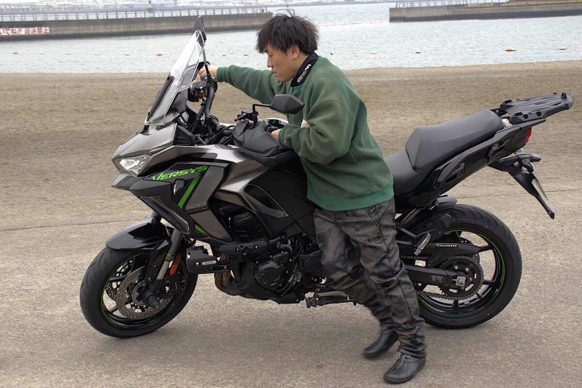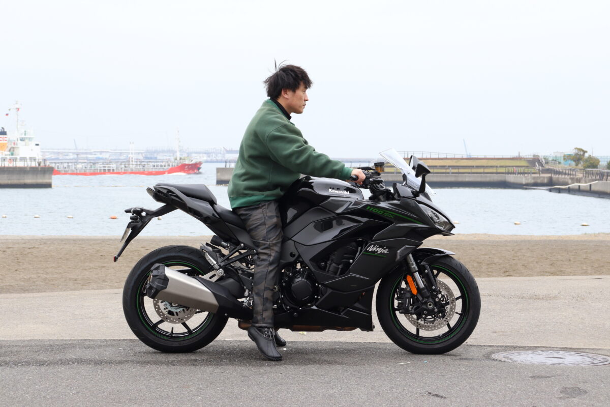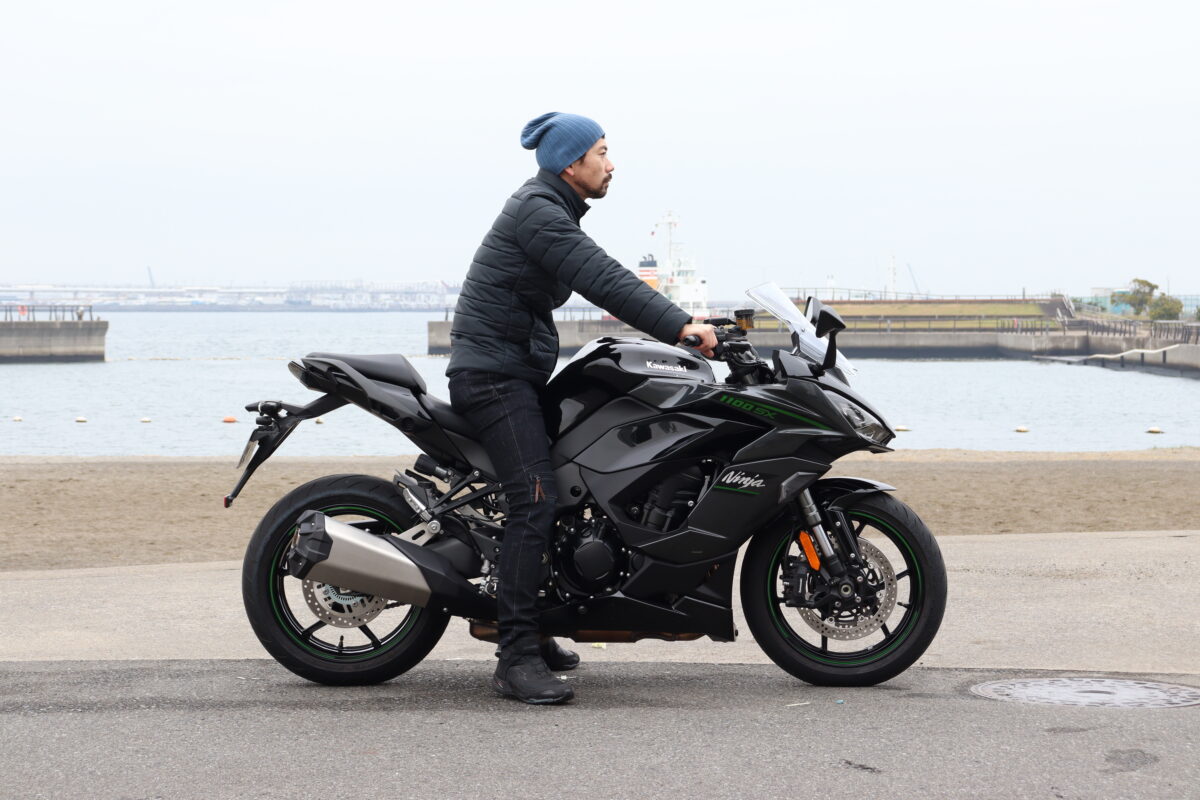 ニンジャ1100SX:感覚はZ900SEに近いが、こちらも足が外に広がりやすく足つきに影響がある