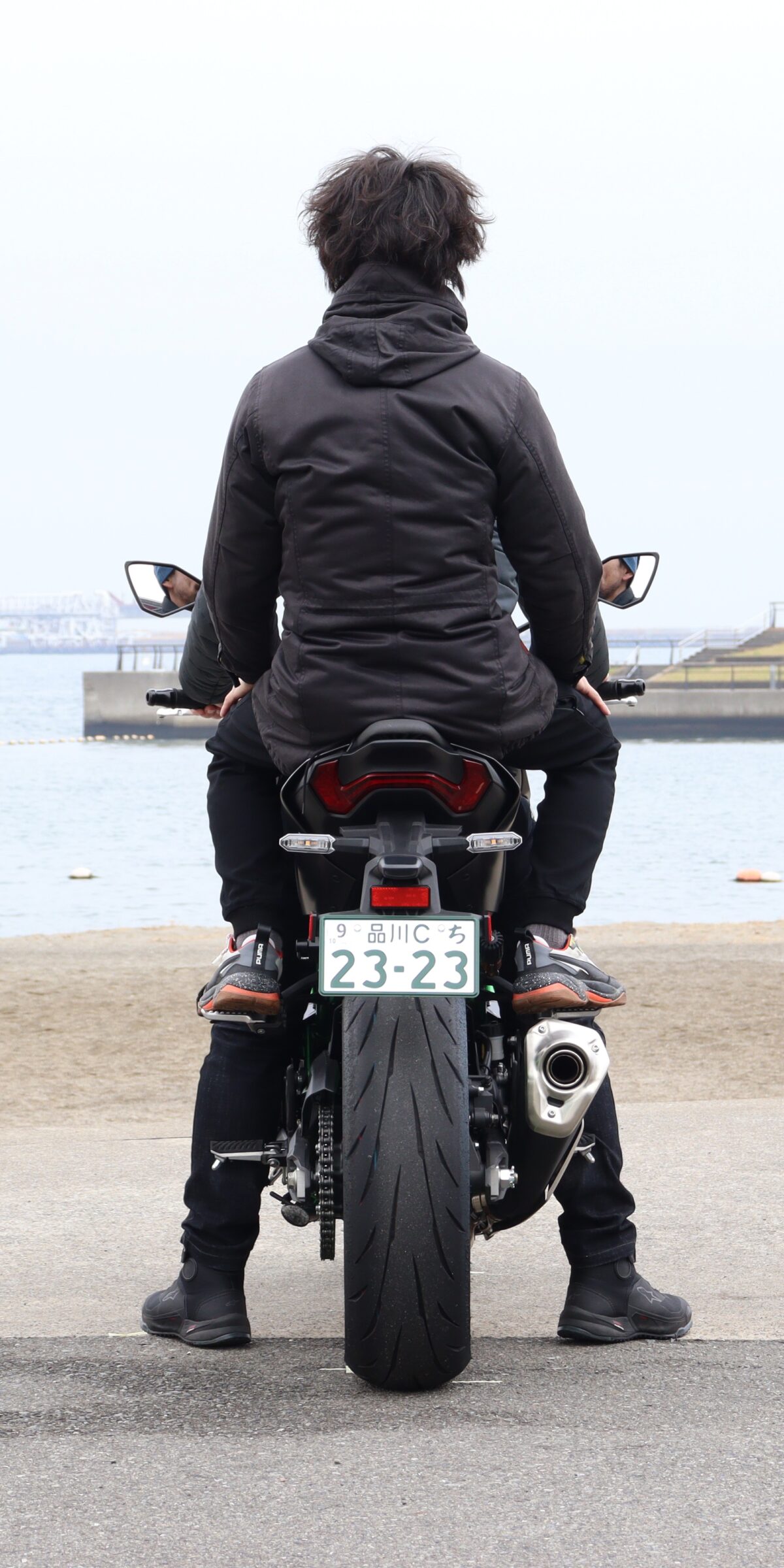Z900SE:両足べったりは難しく、母指球〜つま先接地。足を真下に下ろしやすいので不安を感じない