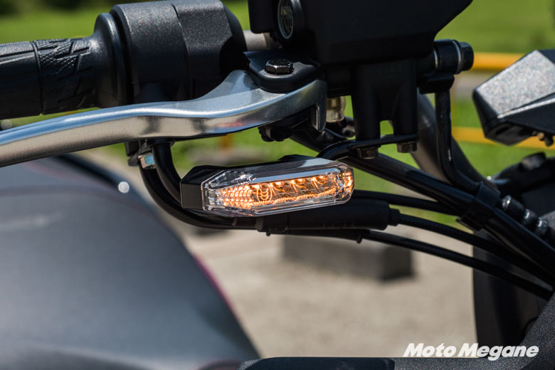 日本のバイクに装備されているのを見たことがないシーケンシャルウインカー(流れるウインカー)が装備されているのも特徴。車では純正採用されている車種もあり、バイク用品メーカーからアフターパーツとして供給されている。