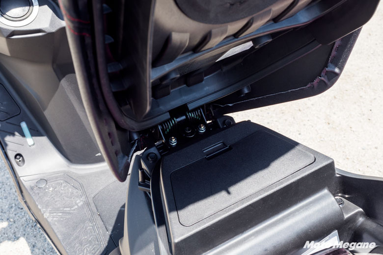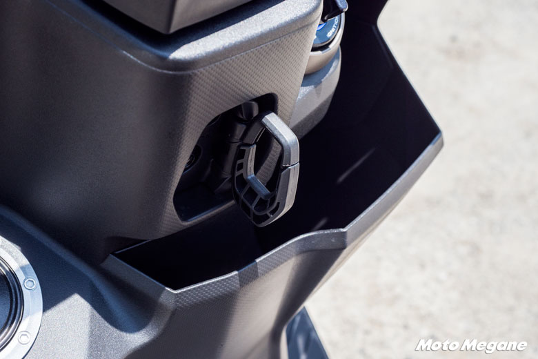 シート下収納スペースは広いとは言えないが、ステップがフラットでコンビニフックも装備されていることから日常的な買い物で使う分には困ることはないだろう。