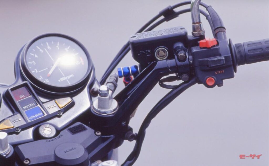 当時は、短く低めにセットされて衝撃的な印象を受けたハンドルは、ジュラルミン鍛造のセパレートタイプ