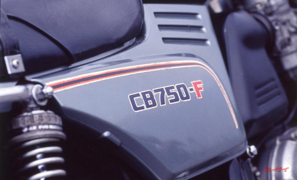 タンクからテールへの美しいつながり役となる、サイドカバー。CB750Fのロゴも、当時は誇らしげに見えた