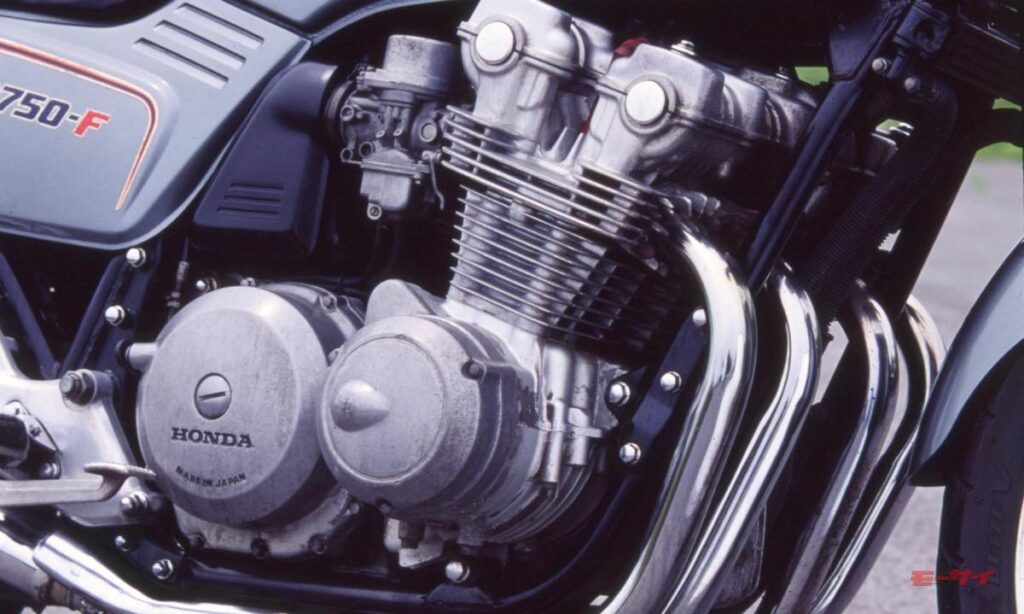 CB750F(FZ)の国内カタログでは、DOHC4気筒、16バルブを強くアピール。ただし、RCBのセミカムギヤトレーン駆動に対し、CB-Fはチェーンでのカム駆動であった