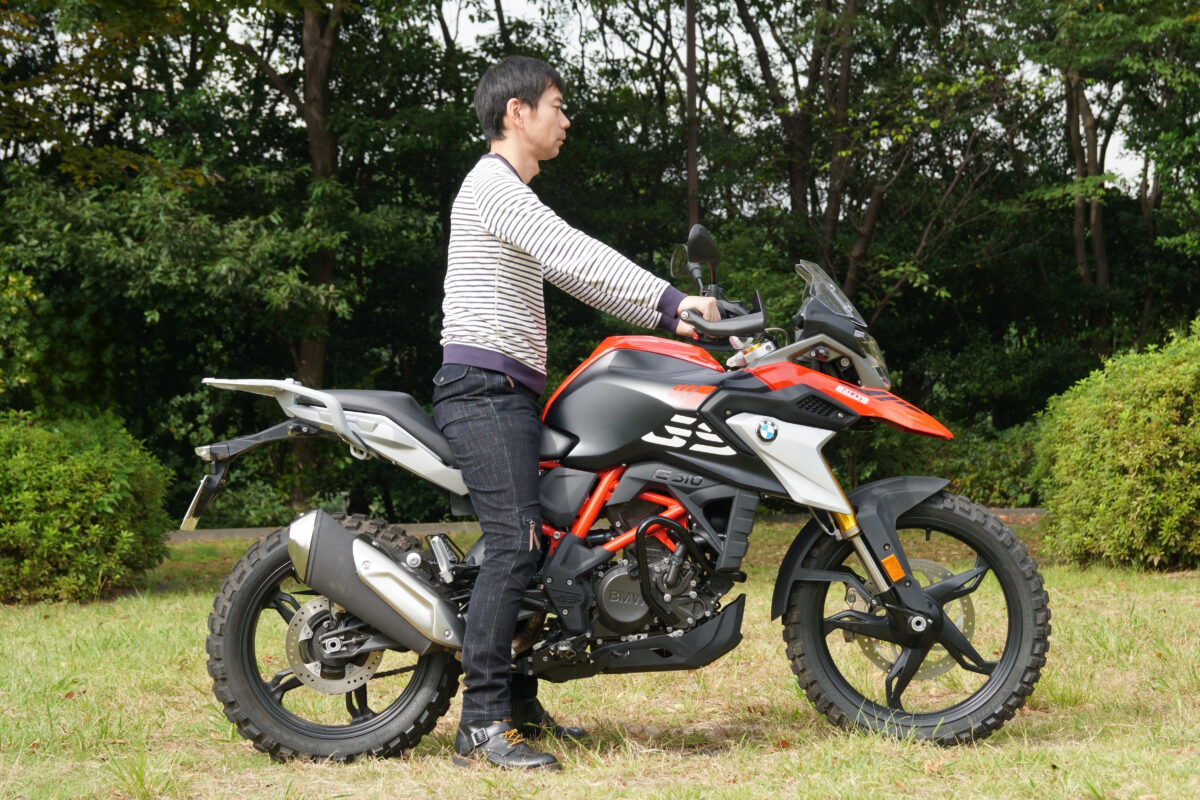 G310GSは軽量で、取り回しがしやすいモデルである。高めのハンドル位置も影響し、押し引きしやすい。ただし、サスペンションが柔らかく車体を立てると沈み込むため、サイドスタンドをしまうときには車体を垂直に立てスタンドが路面に引っかからないようにすることが必要。