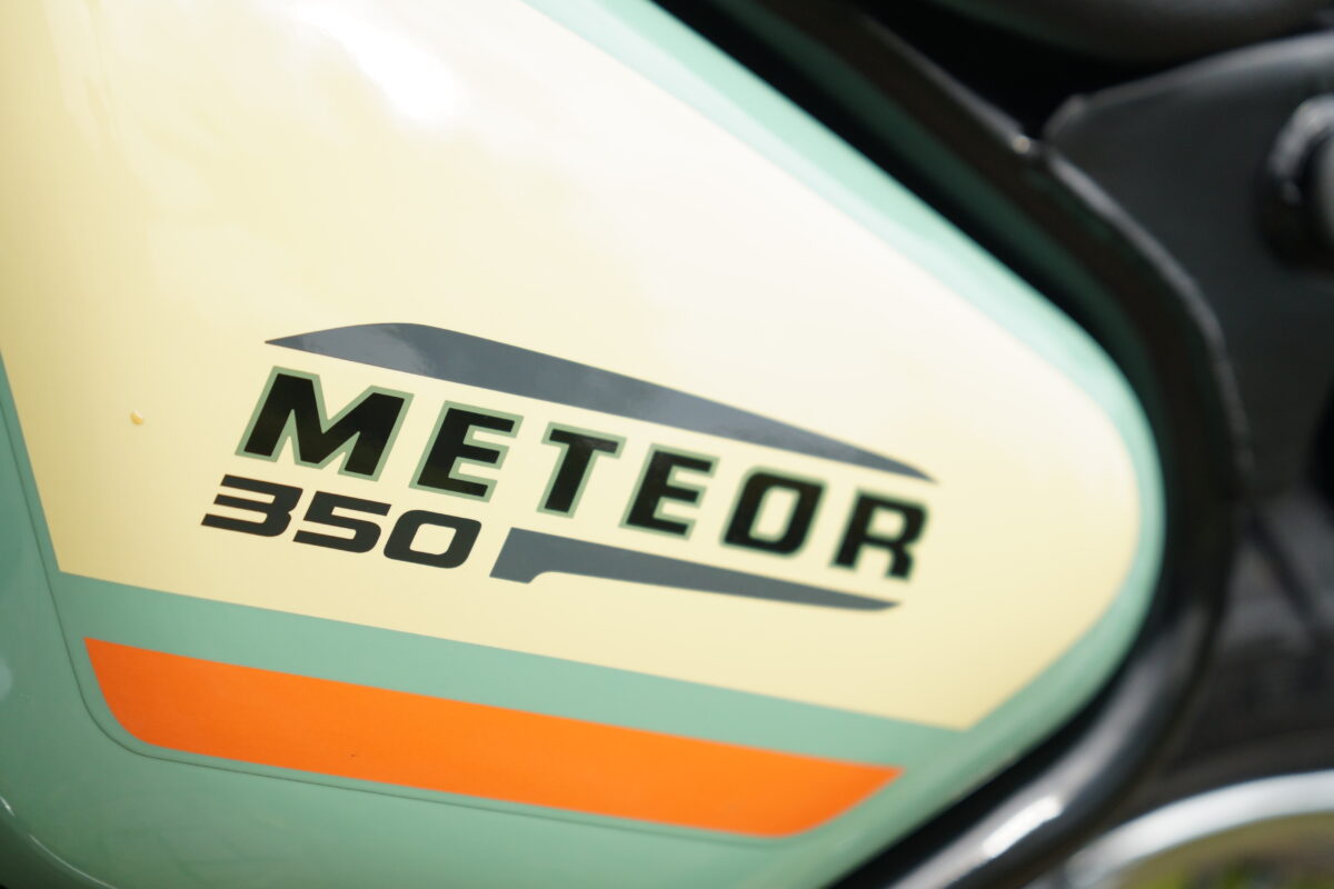メテオ350はクルーザー特有のリラックスしたポジションが特徴である。とはいえ、完全に足を前方に投げ出すようなフォワードコントロールのようなステップ位置ではなく、椅子に座った時の様な自然に足が前に出るミッドコントロールのステップ位置になっている。このため、様々な身長のライダーであっても極めて自然なライディングポジションを取ることができる。シートは広く座り心地も良好。広いシート幅のため足が左右に広がり、小柄なライダーの場合は足着きが多少悪くなってしまうが、低いシート高と低重心な設計で安心して乗れるようになっている。