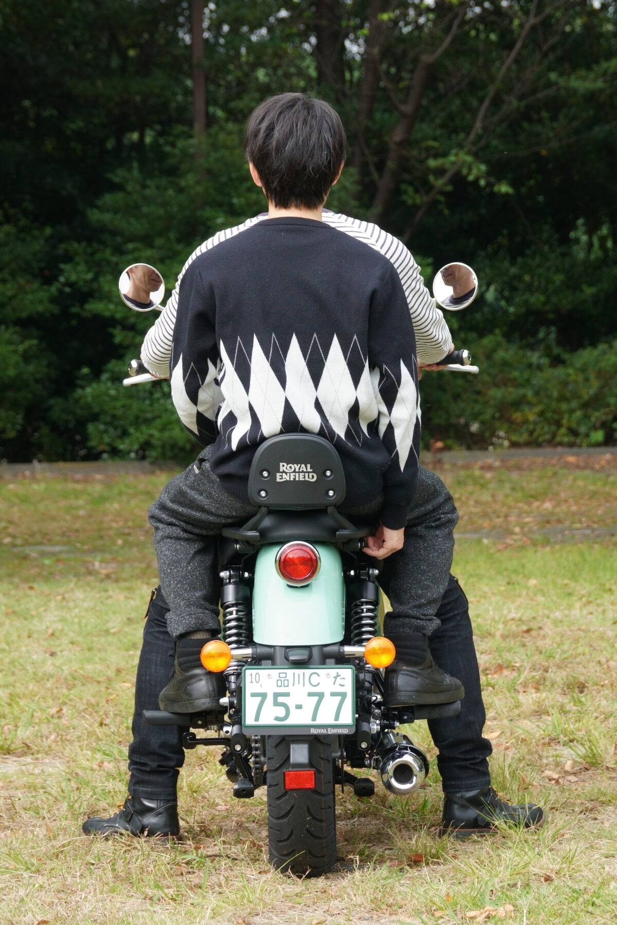 METEOR350はグラブバーが一体型になったバックレスト付きのため、タンデム側も安心してライディングを楽しめる。バイクになれていない人とタンデムするときはもちろん、荷物を積載するときにも便利だ。