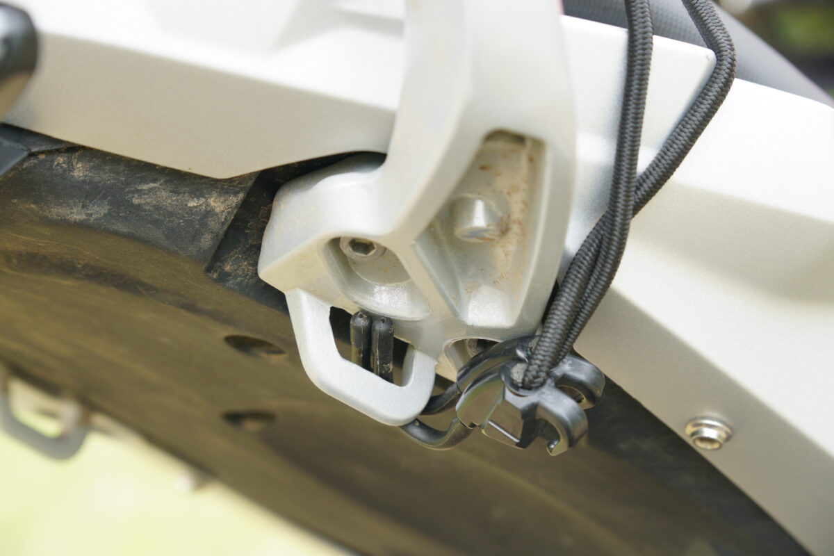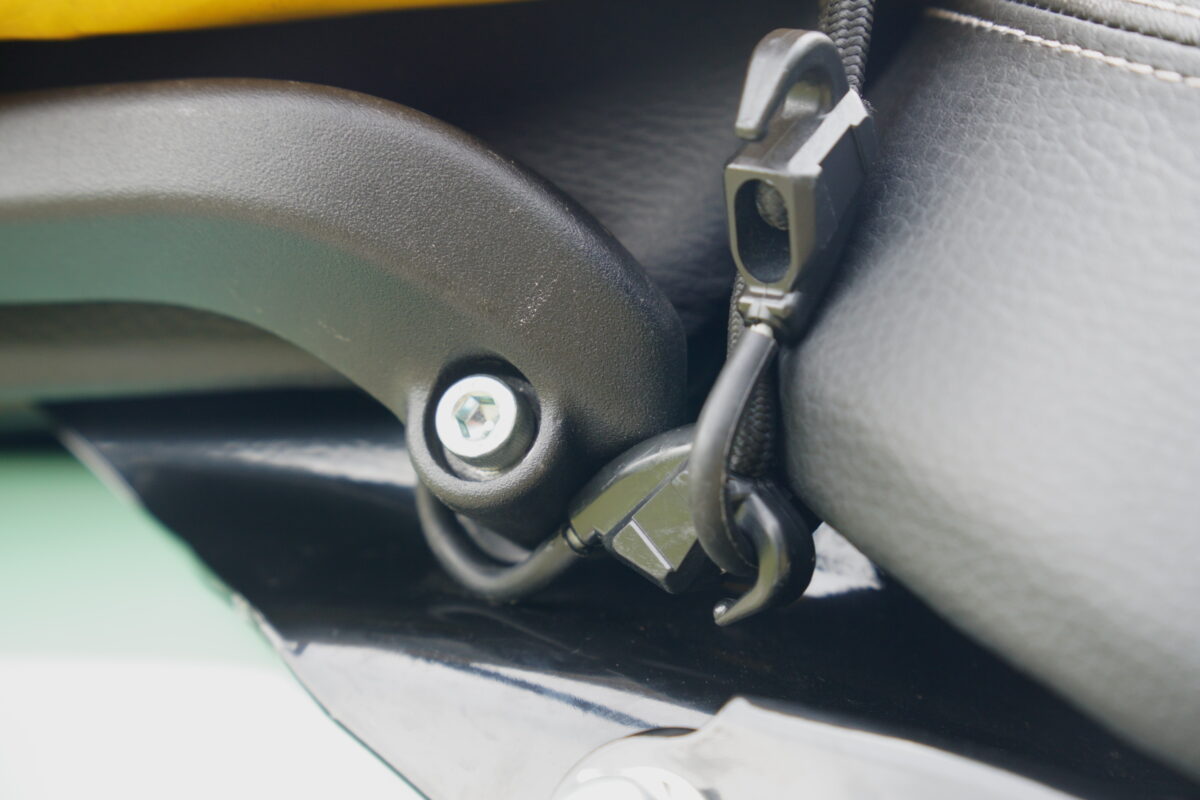 G310GSはリヤキャリアがグラブバーの役目も果たしている。グラブバーは太く非常につかみやすい。