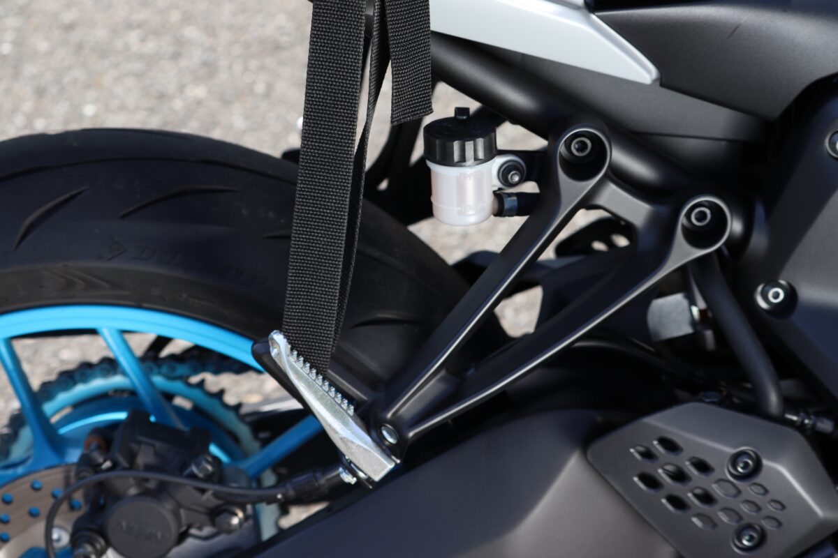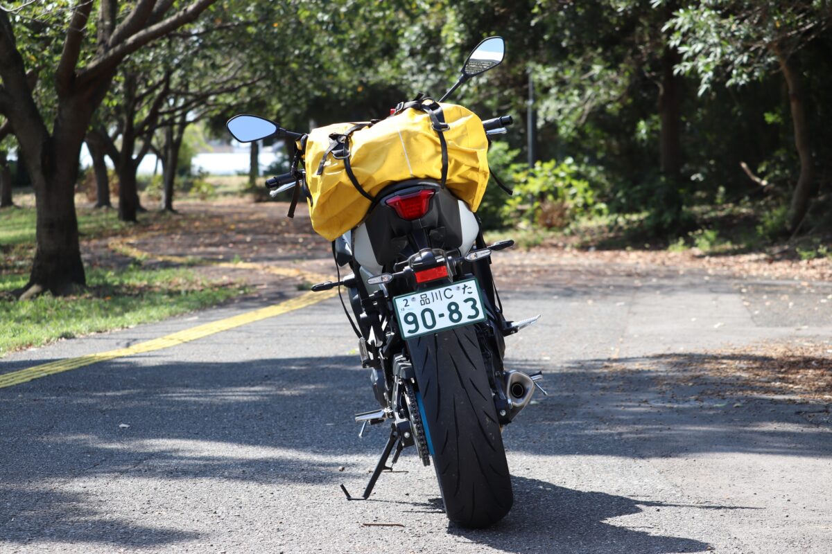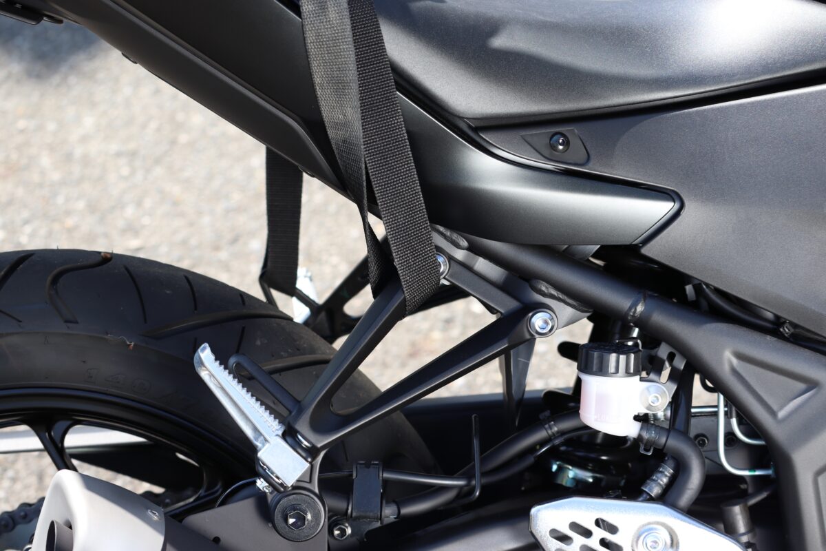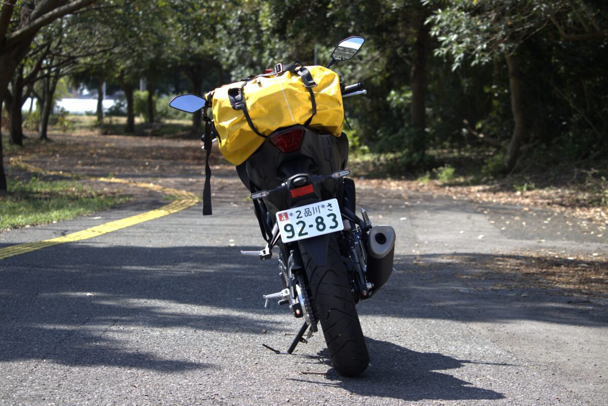 なおMT-09は、タンデムシートを外した際に見えるシートフレームにバッグを固定するサブベルトを通そうと試みたが、どこにもベルトを通せるすき間が見つからず断念……。MT-09のみ荷物を積載した項目が存在しないのはそのため。MT-09に荷物を積載するなら、ドラムバッグをロープ等で固定するのではなく、シートへ固定する仕掛けがあらかじめ用意されているシートバッグを用いたい。
