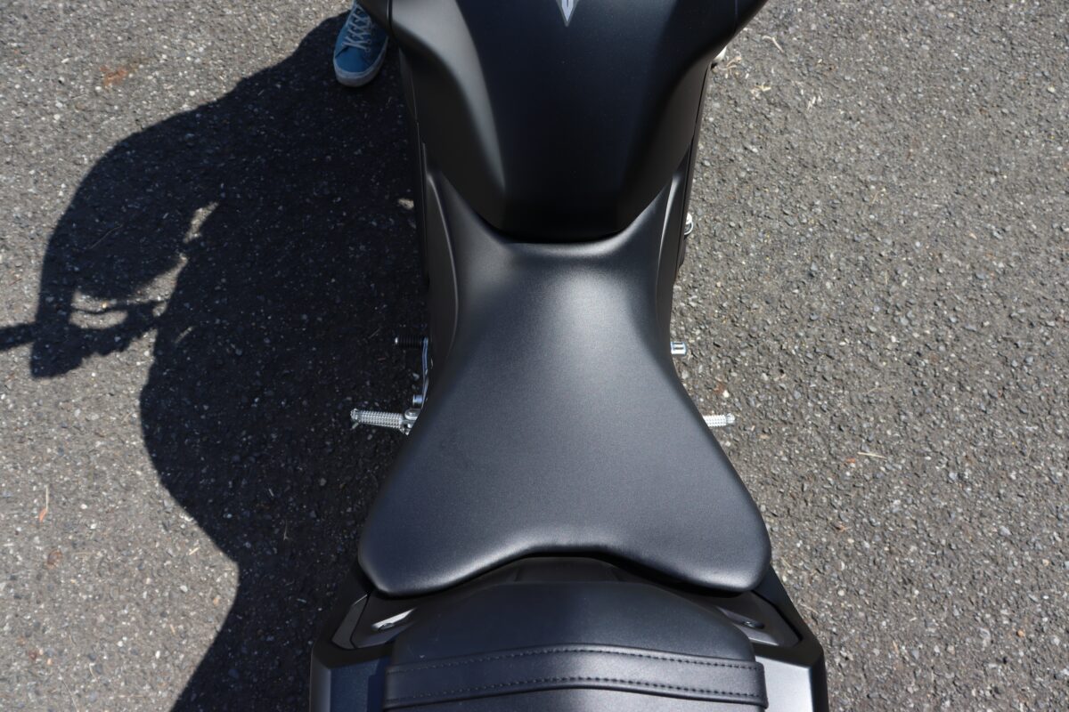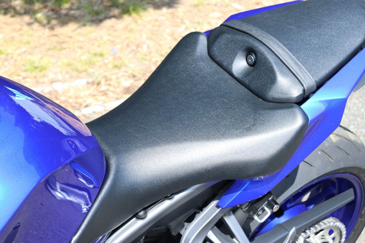シート形状はMT-07は座面が広く、MT‐25とMT-09はかなり絞り込まれていることがわかる