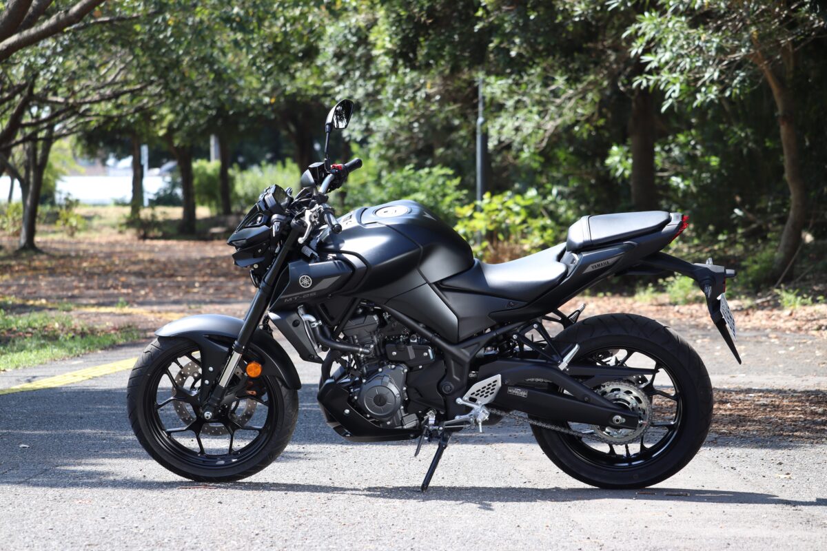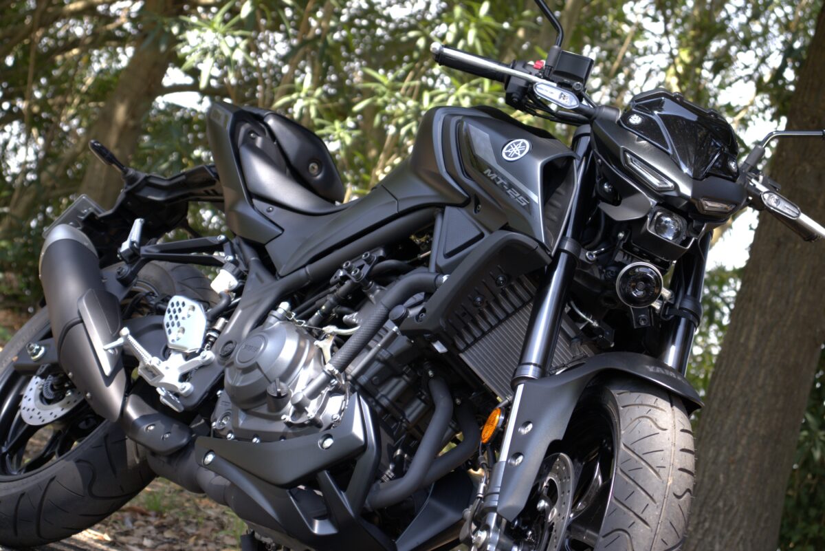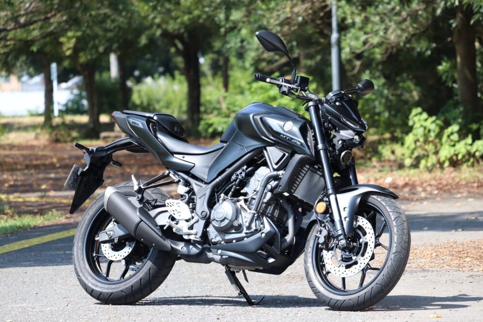 2025年式からアシスト&スリッパークラッチやUSB端子、スマートフォン連携機能などの装備面が大きく進化。780mmのシート高と166kgの軽量ボディにより、取りまわしや足つき性にもすぐれる。320㏄エンジンを搭載する兄弟モデル・MT-03とは基本構成を共有しつつ、排気量や価格が異なる。