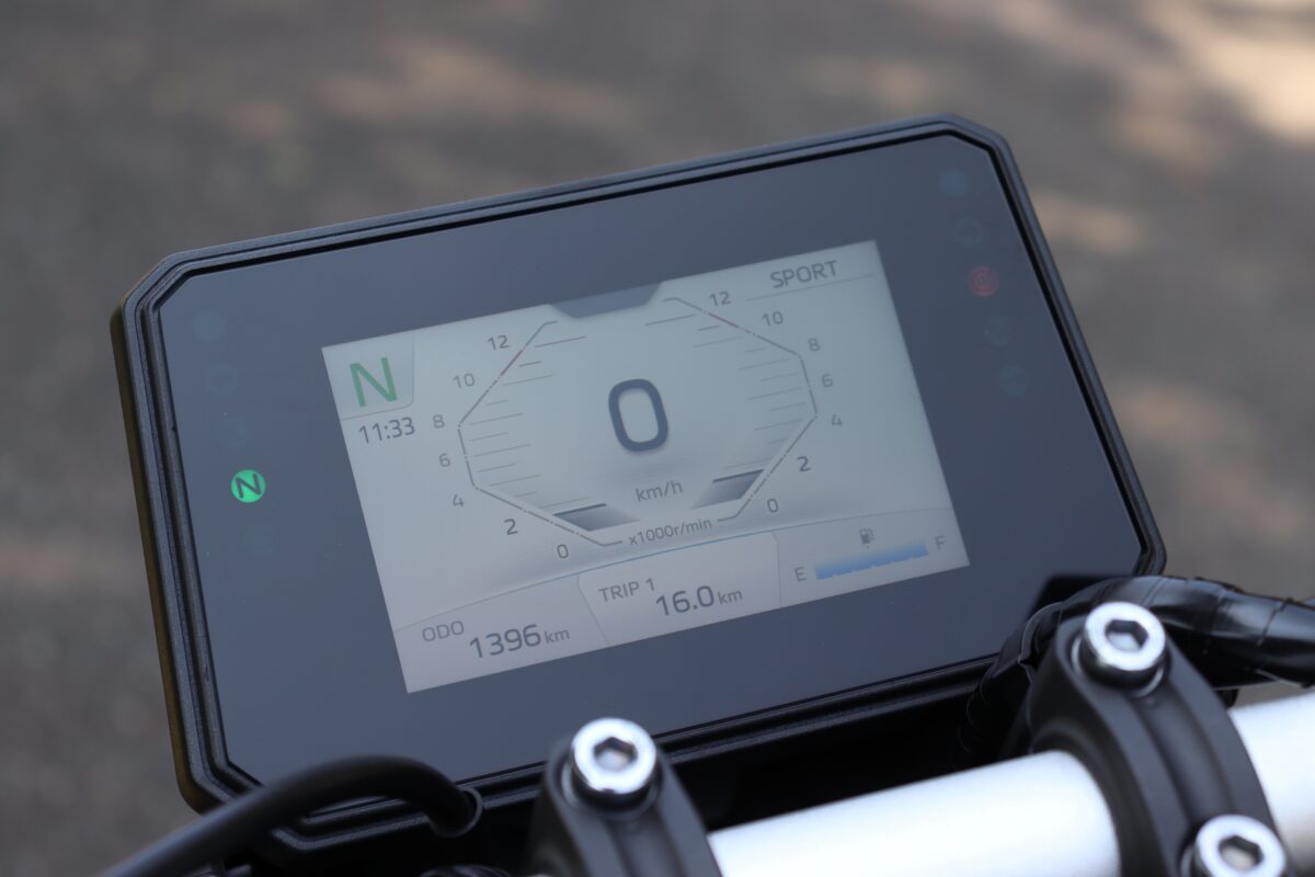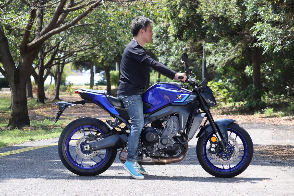 MT-09もMT-07と同様に、クラスを超えた軽快さがありリッターバイクと比べるとかなり取りまわしやすい。シート形状に工夫がされているためシート高の数値以上に足つきがいいところも好ポイントだ。