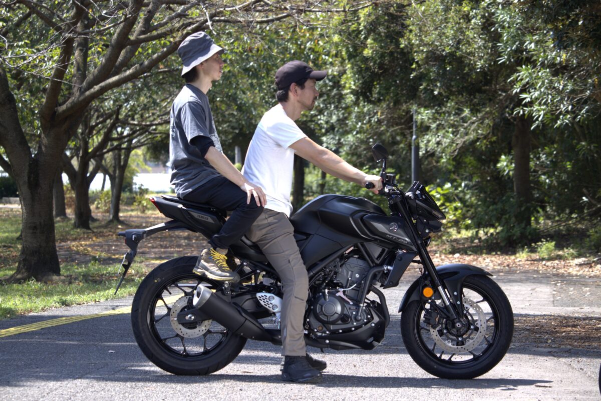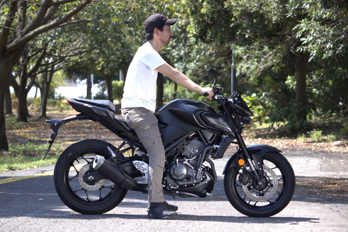 もっとも取りまわしやすく、足つきも良好なのはMT-25。街乗りや駐車時の安心感が高い。また、ベースモデルのYZF-R25よりアップライトなポジションで疲れにくくツーリングも快適。オールマイティに使える250モデルに乗りたい人におすすめだ。