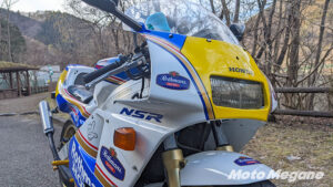 開発時、「2ストロークレーサーレプリカ」というジャンルでは後発組だったNSRですが、1987年に初代発売、1992年には生産10万台を達成しています。