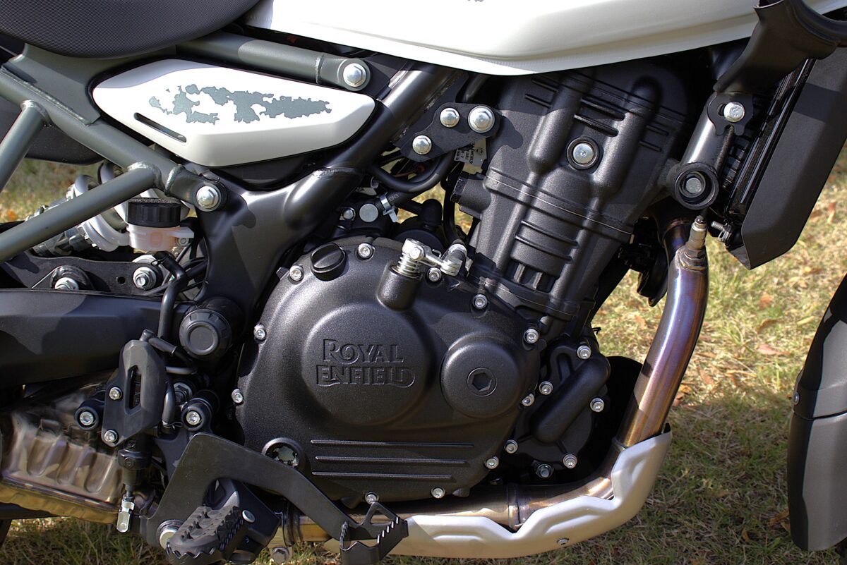 かっ飛び系ではなく、安定したパワー特性でライダーを疲れさせないキャラクター。新型水冷452㏄エンジンは数値こそ公証されていないが、従来のHimalayanに搭載される空冷411㏄エンジンと同じくロングストロークエンジン(ピストンが上下する幅が広い。低速トルク型エンジン)であることは確実だろう。