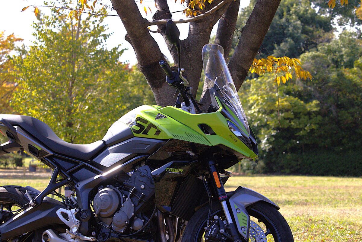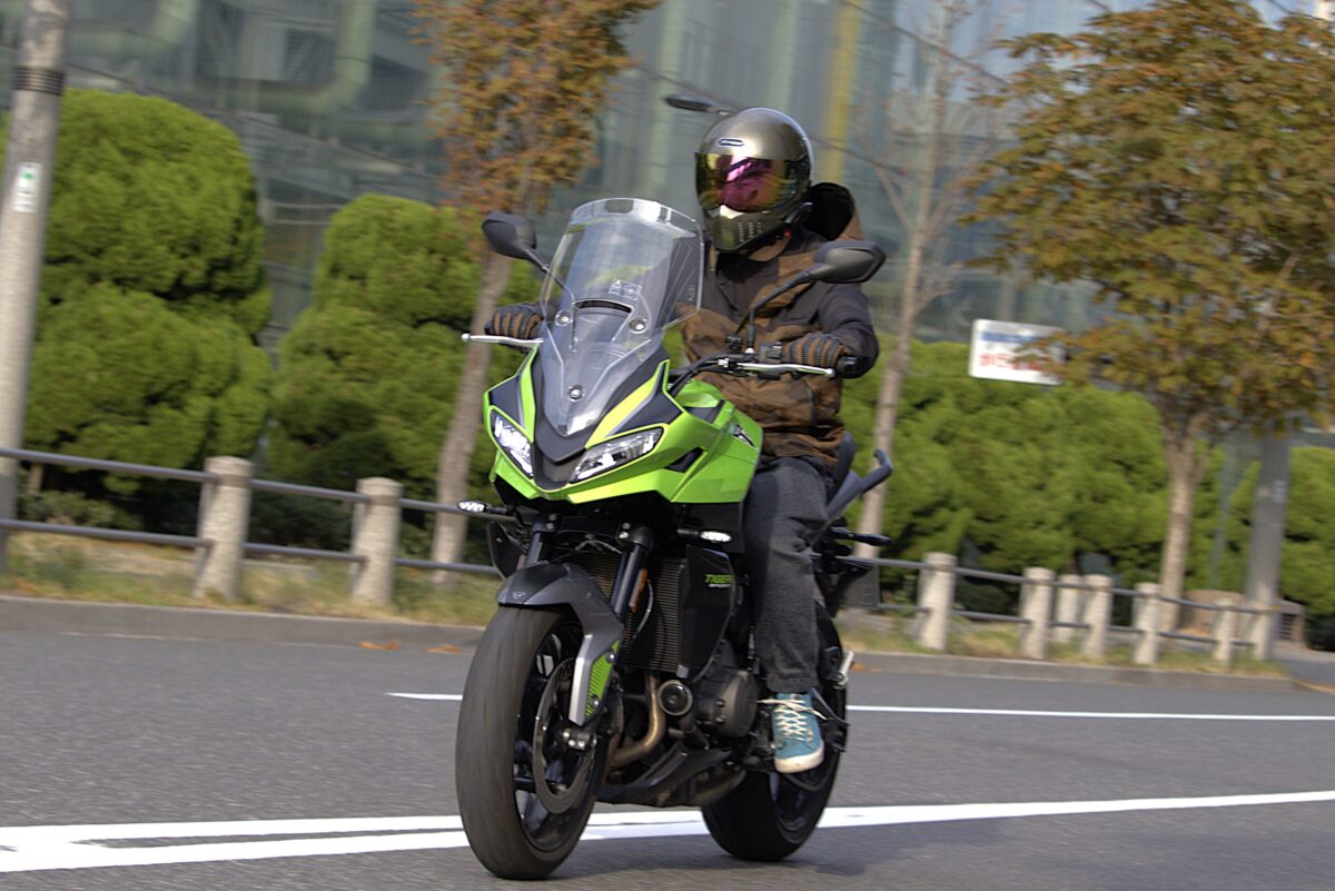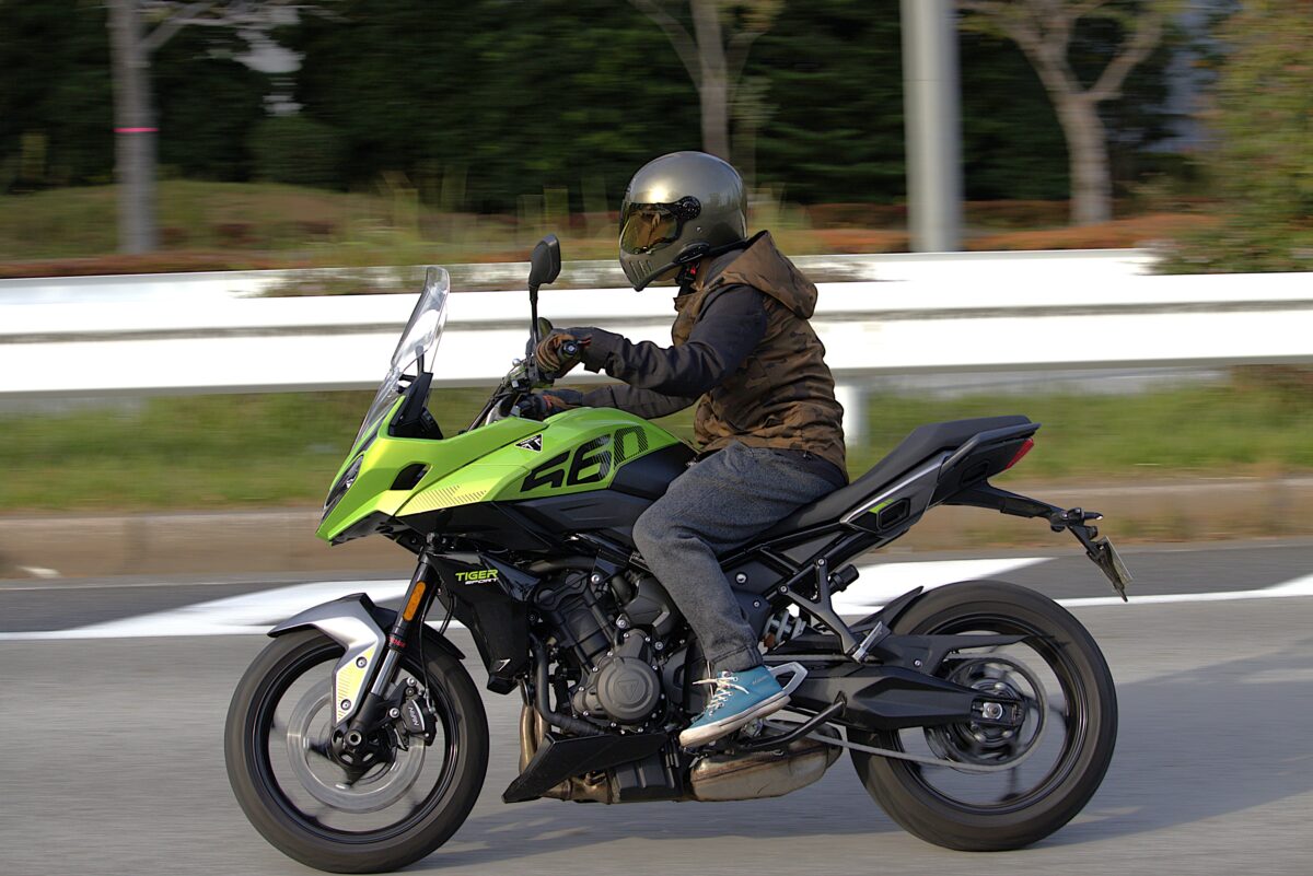 Tiger Sport 660はオンロードマシンに近い安定した走りが特徴で、街乗りではマイルドさが安全性につながり、高速道路では余裕ある巡航性能を発揮する万能型だ。