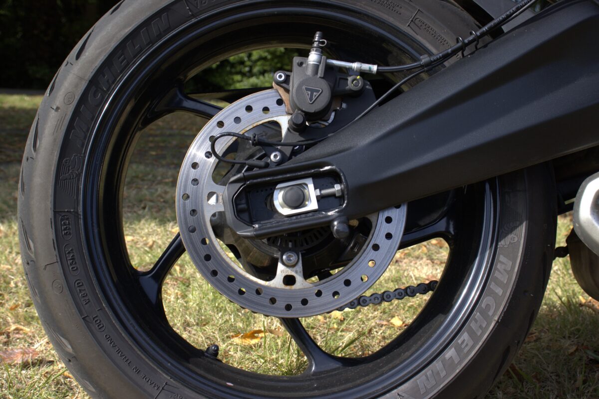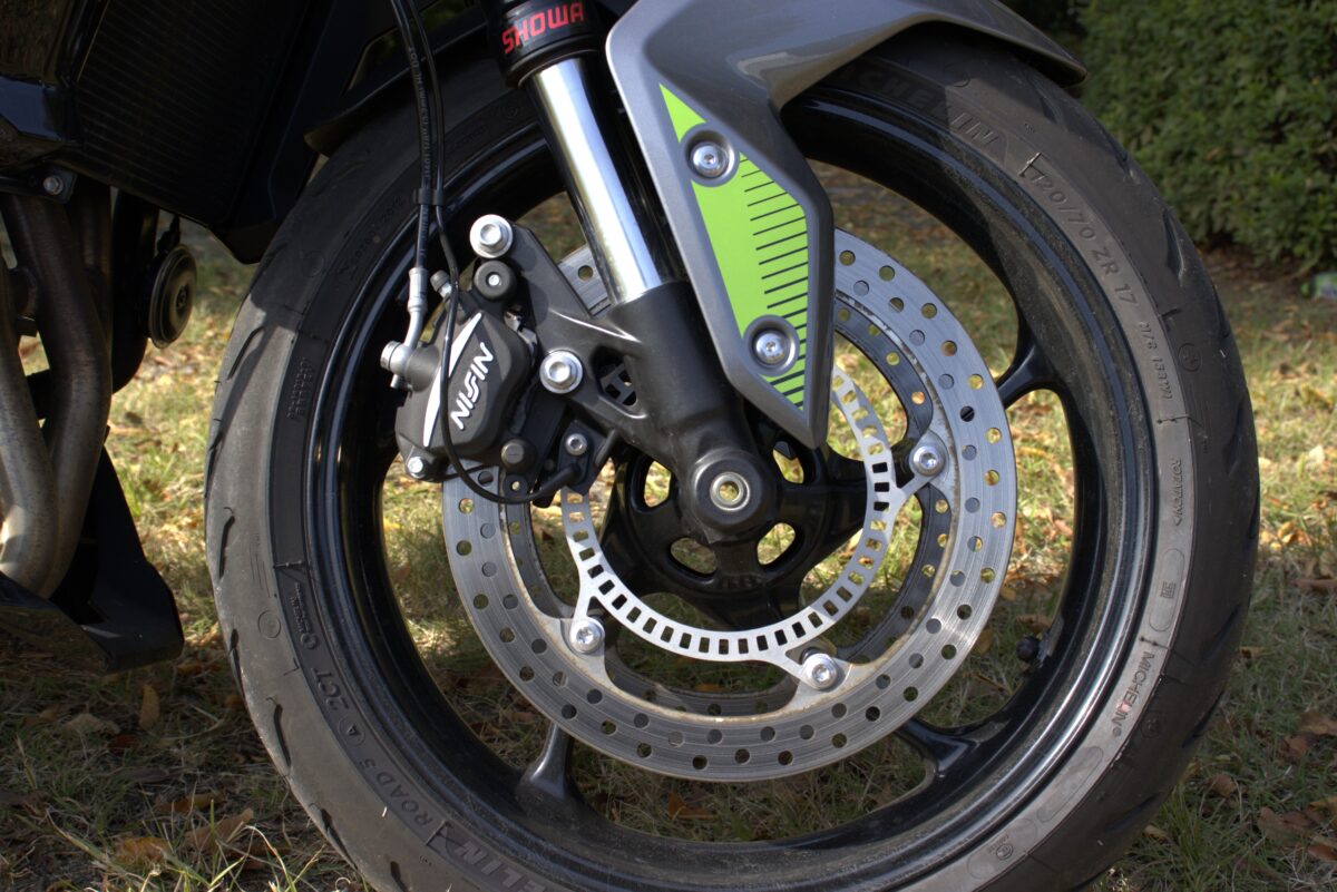 前後17インチキャストホイール+ハイグリップタイヤの組み合わせはワインディングやハイスピードでのコーナーワークにすぐれる。今回の実走テストでは、ほか2車がオフロード特性を意識した設計になっていた分、Tiger Sport 660のオンロード適正が光るシーンが多かった。