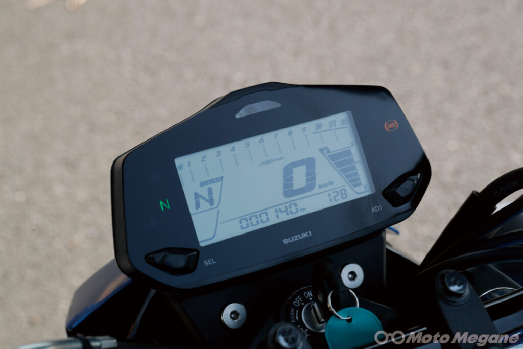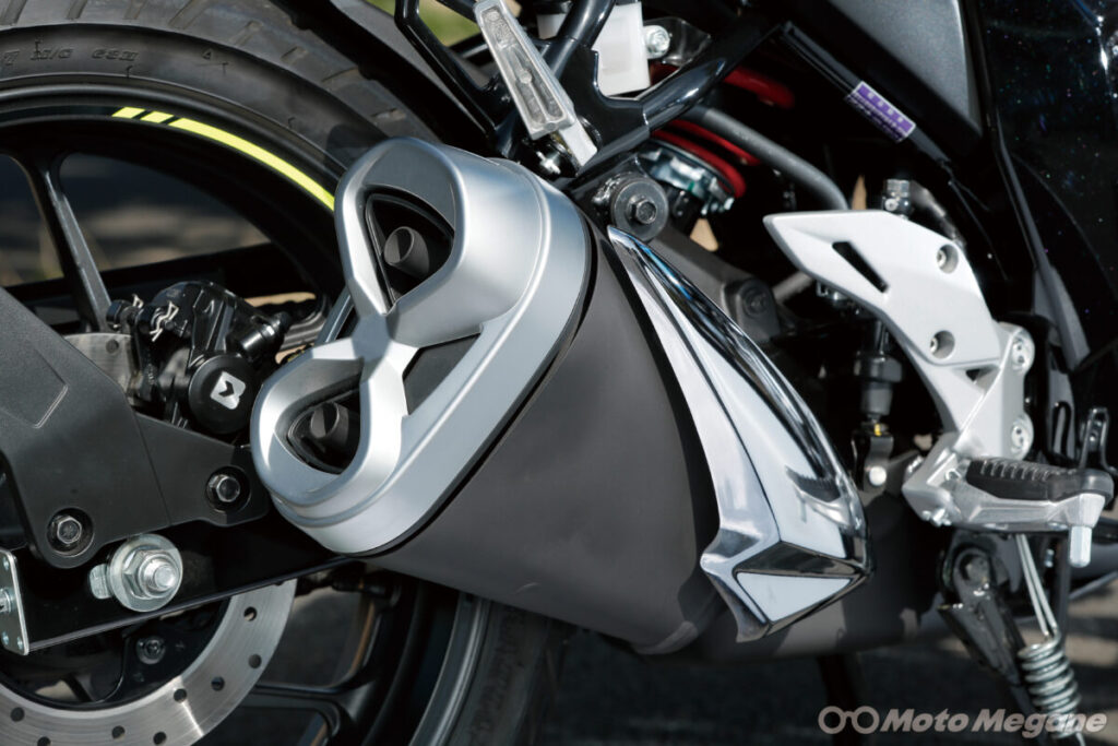 装備についても、ヘッドライトもテールライトもLEDであり、スタイリッシュなデザインのマフラーやフル液晶デジタルメーターも装備。さらにメンテナンスに便利なセンタースタンドまで備えている。