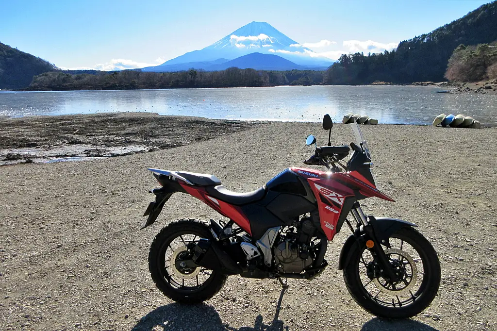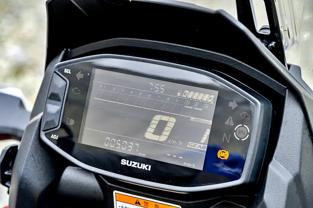まずはV-STROM250SXの全体像だが、スタイルがいいし、カラーリングもいい。黄と赤に乗ったが、ともに黒との配色は絶妙。液晶のメーターは見やすい。エンジンを停止させても距離計が見えるのがありがたい。