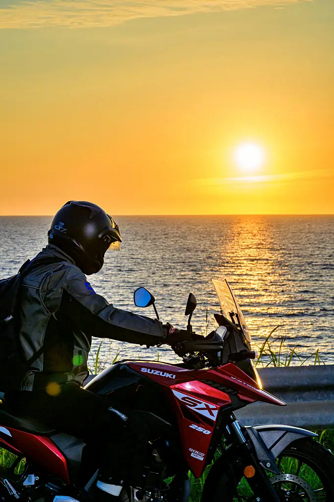 「V-STROM250SX」の優れているのは長距離走行が楽なことだ。シートの造りがいいので、長距離を走ってもそれほど尻は痛くならない。ヘッドライトは明るいし、ハイビームの照射範囲は広いので夜間走行が楽。そのおかげでより走行距離を伸ばすことができる。