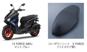 X FORCE Lowは、ローダウンシートX FORCE(税込21,450円)を装着したアクセサリーパッケージ。座面を下げ、シート形状を最適化することにより、乗車時で最大約30mmの足着き性アップを実現している。ちなみに車両本体価格は、407,000円(税込)となっており、X FORCEにあとからローダウンシートX FORCEを取り付けるより1万円安いので、こちらを選ぶ方がお得だ。なお、シートベースは同一のため、シート下の収納容量は変わらない。