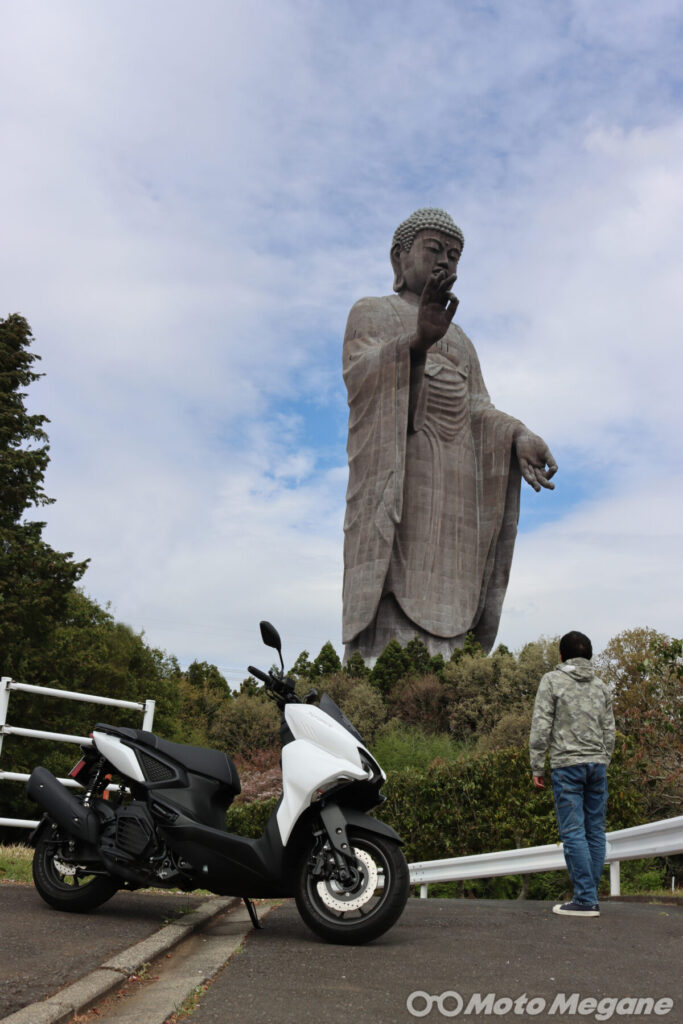 その一方で、幅広のハンドルや剛性感のある足回り、しっかり効く前後ディスクブレーキなどによってライダーが積極的に操ることもできるので、スポーティな走りを楽しみたい時もしっかりと応えてくれる。