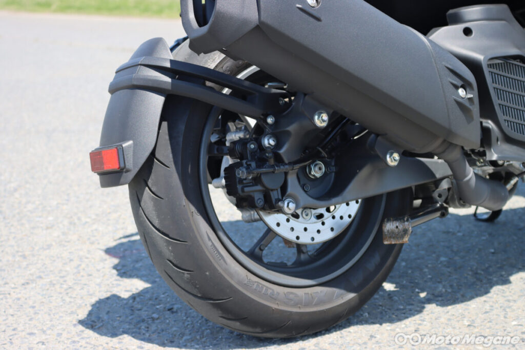 リヤは130/70-13のサイズを採用。タイヤの銘柄はマキシスだ。