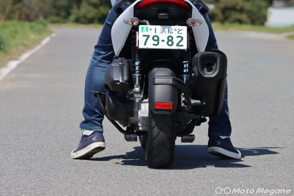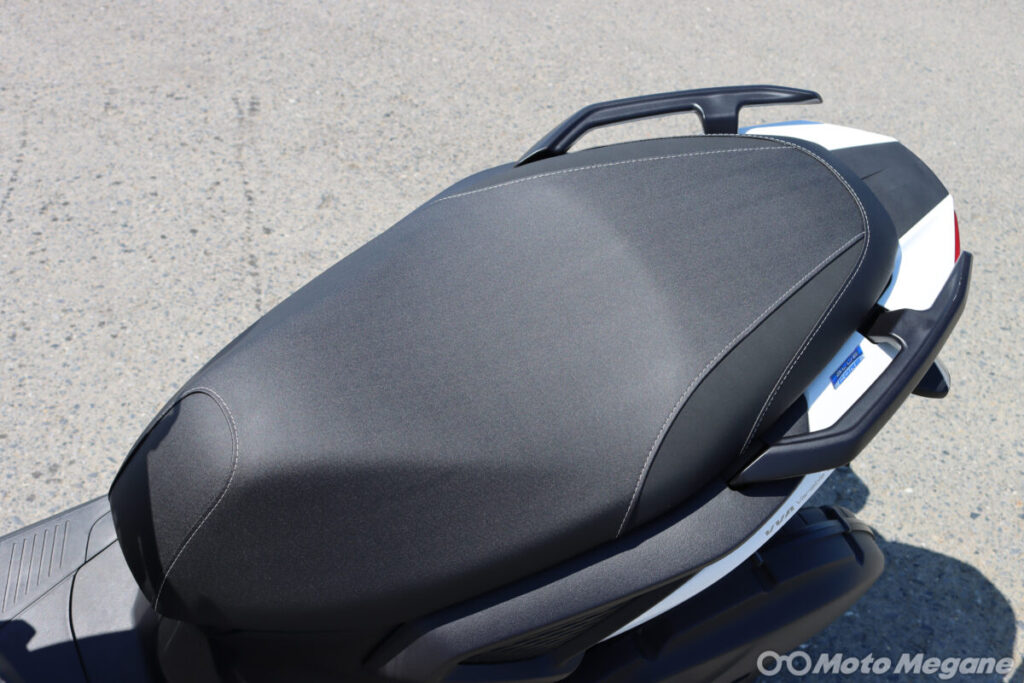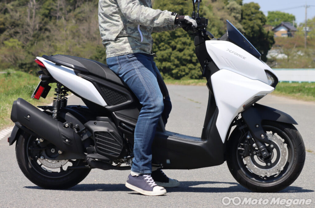 標準のシート高は815mmとスクーターの中では高めであり、頻繁に足を着く街中での走行では少々不安があったが、X FORCE Lowはその辺りがかなり改善された。30mmの効果は大きく、実際に跨ってみるとその差はすぐに感じることができた。