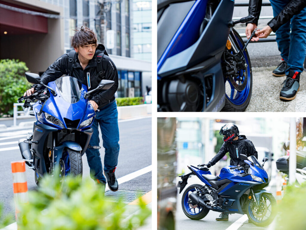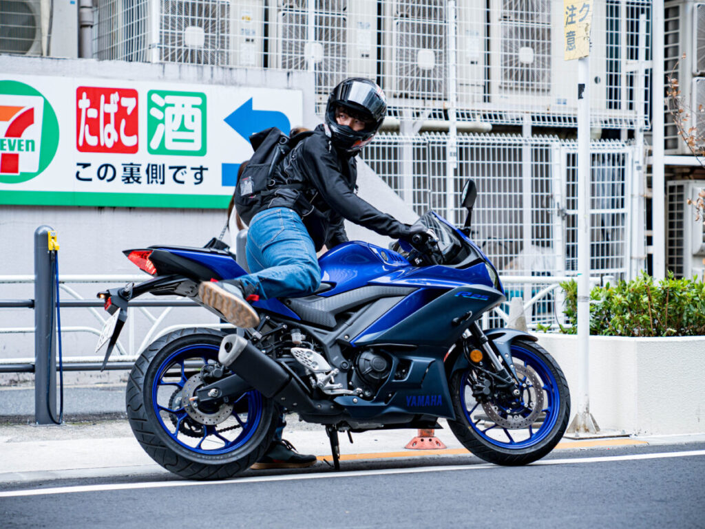R25の車格なら都心部の狭苦しい駐輪場でも難なく駐車できるので、週末のツーリングだけでなく、日常的に街中を移動する交通手段としても頼れる相棒なのだ。