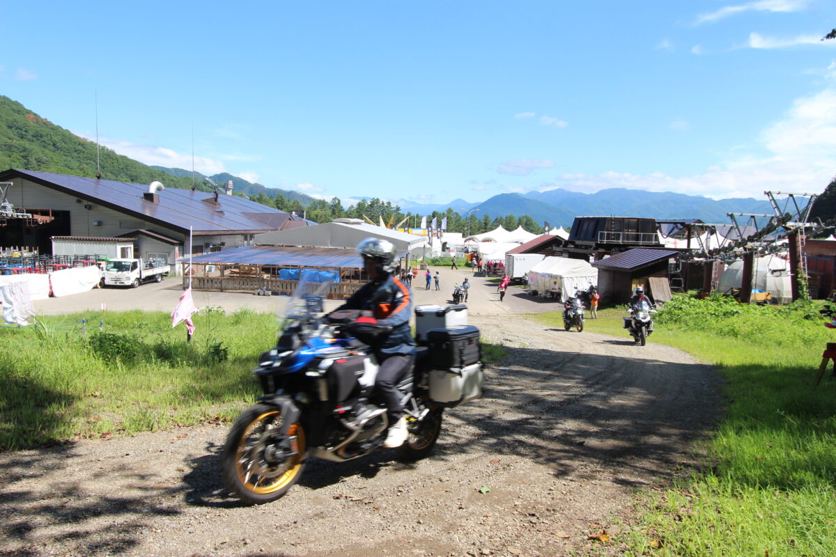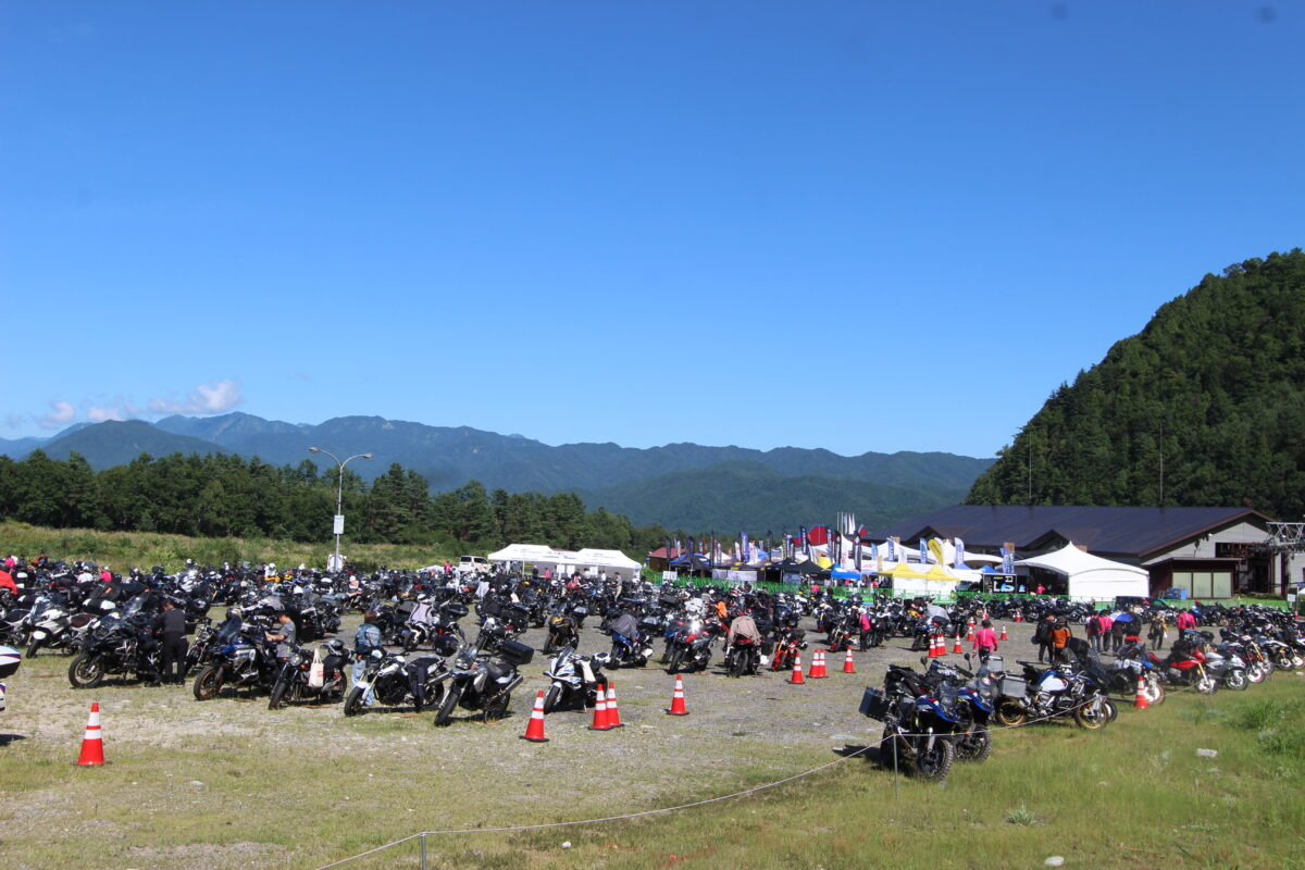 近年は参加者の増大に伴い、バイクも車も駐車場のキャパシティーがオーバーしてしまったため、参加者は少し離れた別のスキー場の駐車場にバイクを停め、そこから無料のシャトルバスで会場へアクセスする。昨年はこのシャトルバスの運行状況に不満の声が上がり、今年からは運行回数を増やすなど、利用者からは状況が改善されたという話も聞いた。