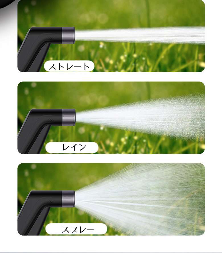レイン:噴射範囲が広いので、自動車の洗車や玄関のタイル、外壁の掃除を行う時に役立つ。