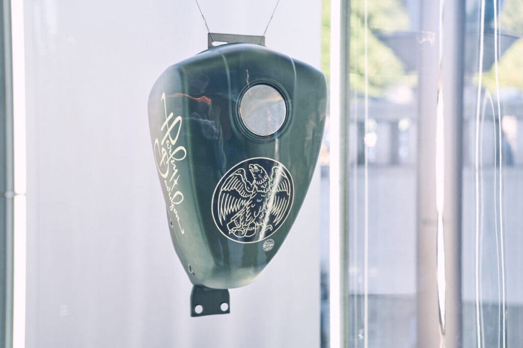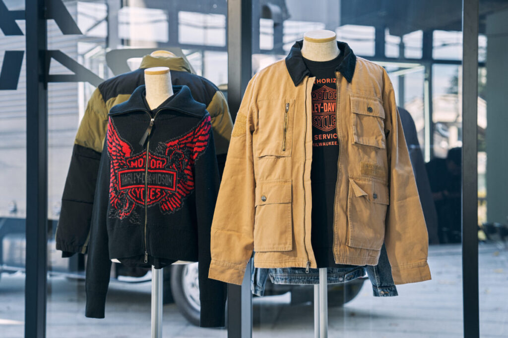 ②スペシャルタンクアート作品やハーレーダビッドソンのアパレルの特別展示