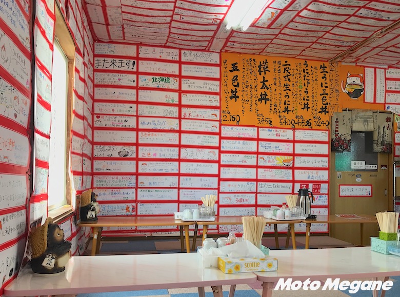 その主張が激しい外観と、内部にぎっしりと敷き詰められたライダーの寄せ書きが、ただの食堂でないことを物語っています。