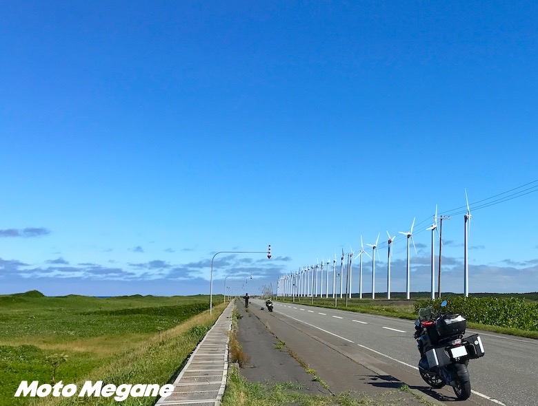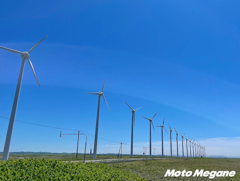 なんせ、地平線が見える直線道路に、約3kmに渡って巨大な風車が立ち並ぶ風景は、おそらく日本でオンリーワンでしょうから、そりゃ〜鳥肌が立つわけです。