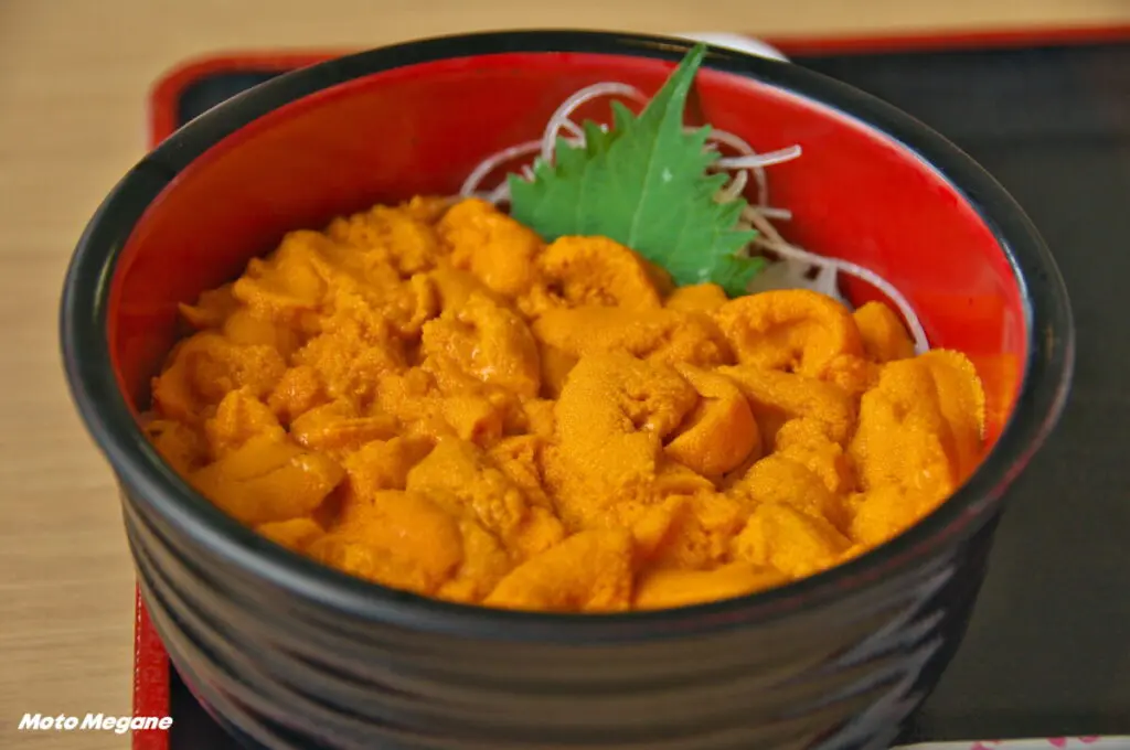この道の素晴らしさは、数々のアイヌ伝説を生み出した荒々しい奇岩奇勝が続く海岸と、「積丹ブルー」と言われる比類ない美しい青さを持つ海に集約される。カブトラインの岩内~積丹の区間では、荒々しい奇岩奇勝の海を眺望しながら走る。断崖の海岸を貫く1000m~2000m越えのトンネルの前後は、日本海の荒波によって削られた荒々しい岩肌が現れる。カブトラインのハイライトは神威岬だ。20分の遊歩道の先に広がる積丹ブルーの海にそそり立つカムイ岩は神々しい。さらに、道道913号に入って半島突端の島武意海岸もぜひ立ち寄りたい場所だ。有名なウニ丼のみさき亭はこの沿道にある。高い(5500円)が限定20食の赤バフン生ウニ丼は一度は食したい。(6月~8月限定)