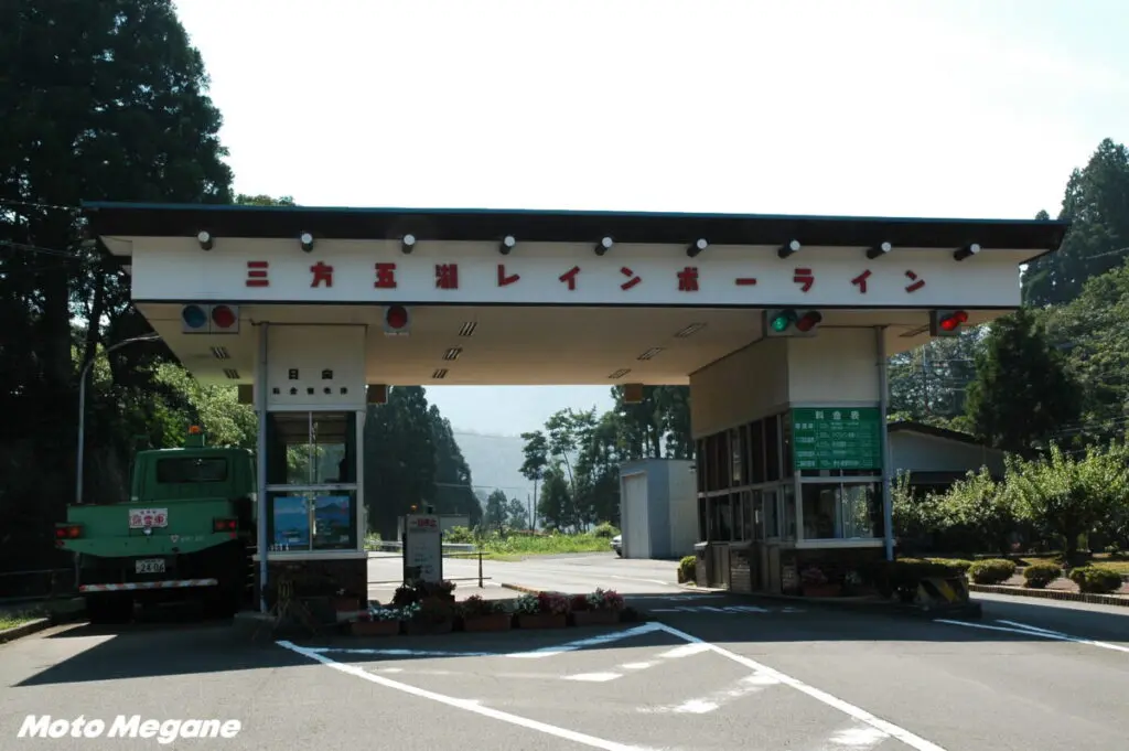 『三方五湖レインボーライン』は、この三方五湖を縫うように走る全長11㎞の観光有料道路である。入り口は、東側が県道214号の笹田交差点から入り料金所は日向ゲート、西側が県道216号から入る海山ゲートで、区間内には大小合わせて5つの駐車場があり、第一駐車場は山頂公園に通ずるリフト乗り場になっている。