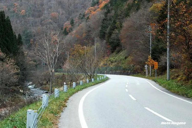 岐阜県高山市と郡上市を結ぶ全長約65kmの快走路「せせらぎ街道」は、秋になると紅葉のトンネルを抜けるような景観が広がる。標高差があるため、走るごとに色彩が移り変わるグラデーションが楽しめるのも魅力のひとつ。道沿いには清流が流れ、名前の通り“せせらぎ”を感じながら走ることができる。