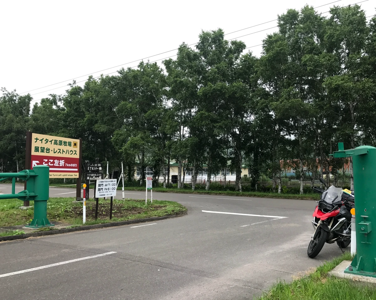 ちなみにナイタイテラスの駐車場にはバイク専用スペースが用意されているので、実は夏の北海道は通常のアスファルト駐車場にバイクを停めると、サイドスタンドが埋まってしまう場合があるので…必ずバイク専用スペースに停めましょう(ここ重要です)
