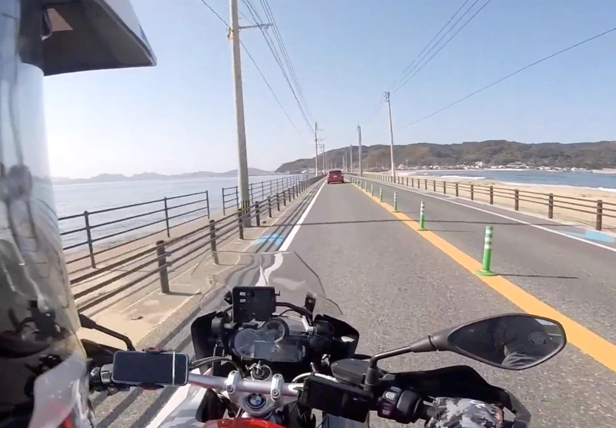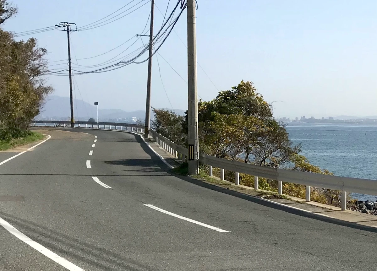 ぶっちゃけ福岡に限らず九州の都市部は変わった交差点や一方通行が多く、全体的にバイクで走りにくかったりしますが…とにかく頑張って愛車と県道59号線を目指してください!両側が海のそれはそれは素敵な道を走れますので!