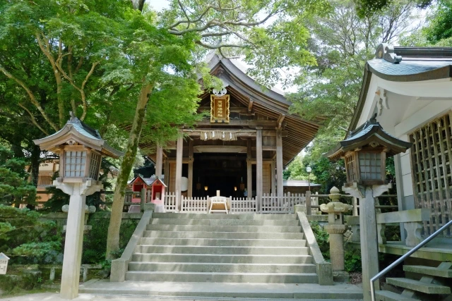 さてさて、志賀島ドッグでお腹が満たされたところで、最後は明日に向けてのパワーチャージ!をするために「海の底、中、表」を守る「綿津見三神(わたつみさんしん)」を祀っている「志賀海神社(しかうみじんじゃ)」へと向かいます!