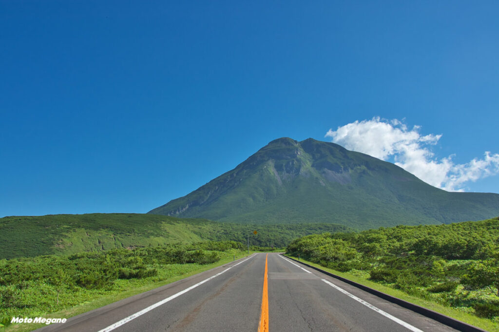 ウトロ側からは、知床自然センターを過ぎたあたりから本格的なワインディングがはじまり、途中から羅臼岳を眺望しながら知床峠をめざす。北海道らしいRの大きいゆったりとしたカーブと直線道路が続き、大型バイクの本領発揮という感じだ。知床峠手前の連続する大きなカーブあたりから見るオホーツク海と道路の美しさは絶品で、草原と林が混在する景色は素晴らしい。
