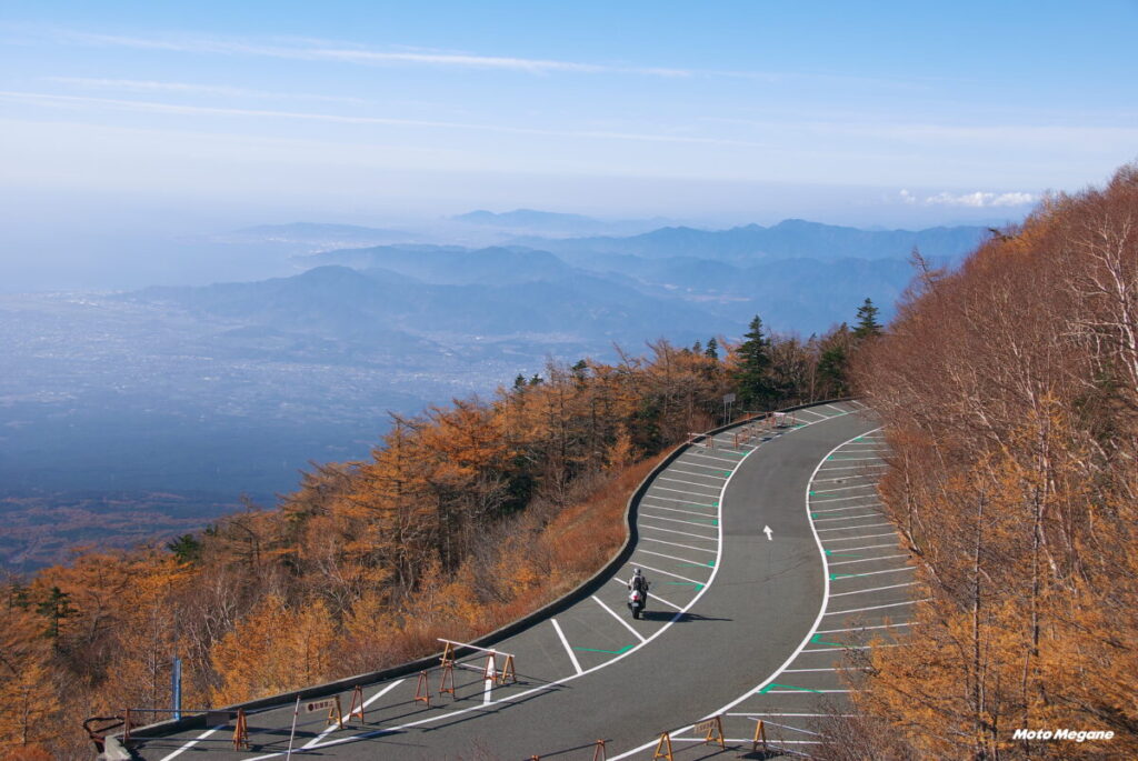 原則登山ルートは全線駐車禁止だが、七曲がり、写真撮影地に狭いが車両を停められるスペースはある。五合目付近は強風の場合が多いので、バイクが倒れないように注意したい。