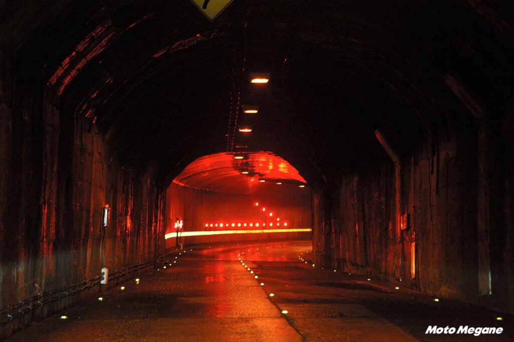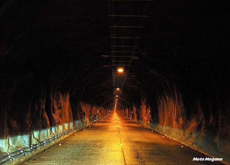 全長22kmのうち18kmがトンネルというちょっと異質な道。トンネルは長短あわせて19。途中の絶景紅葉ポイントとして有名な銀山平への分岐がある。ナトリウム灯の色合いが最初は新鮮で、思わずため息が出る。途中大型車用の方向変換スペースが作られているので、そこに車を停めれば撮影が可能。紅葉の時期をはずせば車は多くないので、早朝ならゆっくりとトンネル内で撮影できる。側壁がきれいに舗装されているところと素掘りのままのところがある。
