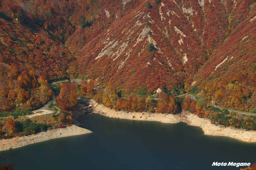 この後は、紅葉の時期ならそのまま奥只見樹海ライン(国道352号)で湖岸をトレースしよう。本州でもトップクラスの真っ赤に染まる山々が、ロングツーリングの辛さを吹き飛ばしてくれる。福島県との県境を越え尾瀬、檜枝岐(ひのえまた)を過ぎて国道401号~国道289号~とつなぎ、国道252号(六十里越道路)で田子倉湖沿いを走って関越道小出ICまで戻るというツーリングプランも立てやすい。
