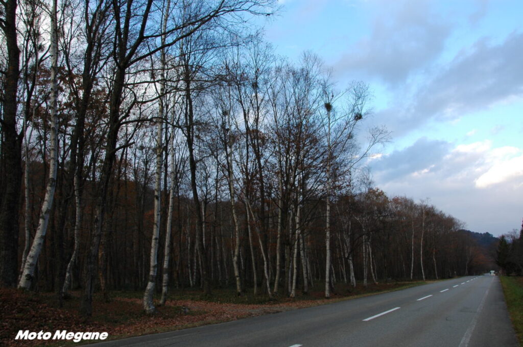 せせらぎ街道の名のとおり、川上川(峠北)と馬瀬川(峠南)の渓流沿いに走る道路は大変よく整備され路面状況は最上レベル、信号がなく、ヘアピンの少ないゆるやかなカーブが続く快走路なので安心して走ることができる。移り変わる景色は季節によっても表情を豊かに変え、ドライバーやライダーを楽しませてくれる。白樺林・カラマツが続く渓流を見ながら走っていると、何かほっとするような癒しを感じさせてくれる道だ。