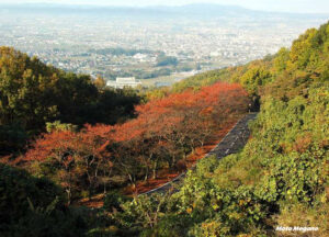 大文字焼きで有名な高円山を登るコース。こちらは一転して展望が広がりヘアピンが続き走りも十分に楽しめる道。ドライブウェイ沿いから徒歩で「石仏・石窟仏」巡りが出来る。